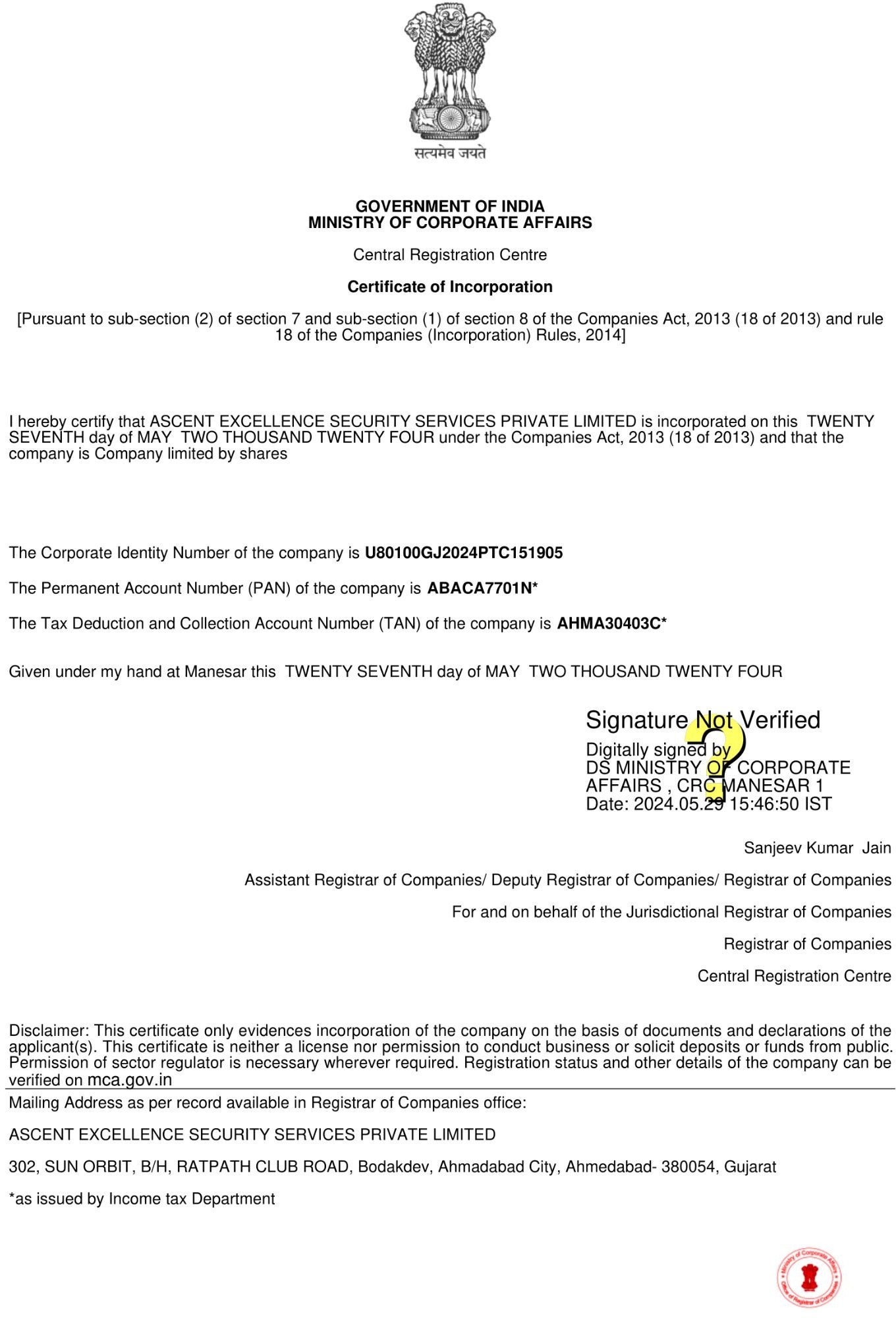 Certificate Of Incorporation