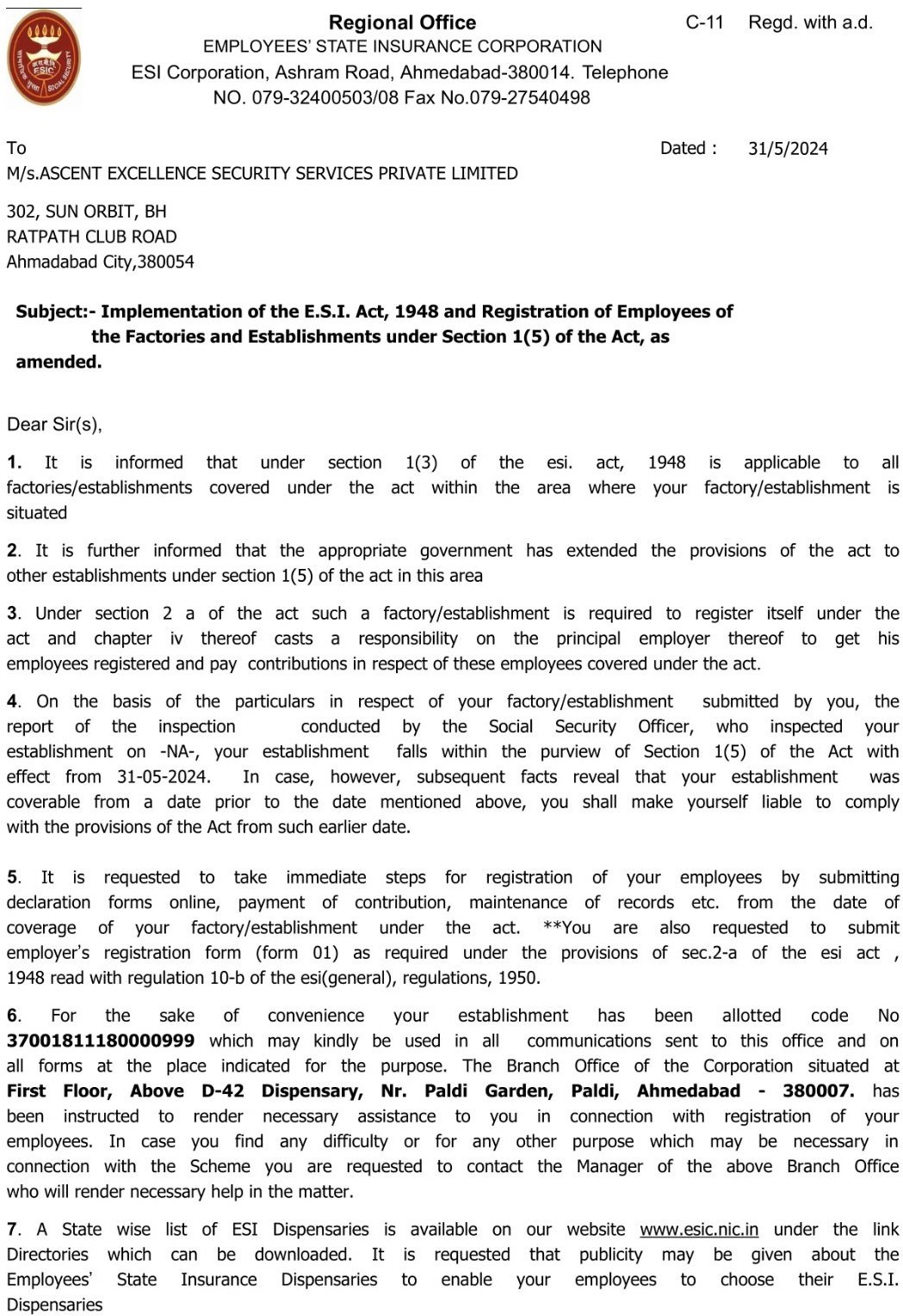 ESIC Certificate